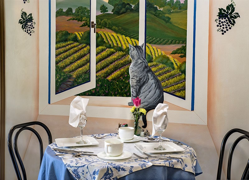 Breakfast is special at Candlelight Inn, and it starts right here in our beautiful first floor breakfast room, overlooking our backyard gardens and pool. Our chef of 23 years has an array of tried-and-true recipes, so each morning of your stay, you can expect a freshly made, plated 3-course breakfast made from scratch, served daily from 8:00am – 9:30 am 7 days a week!